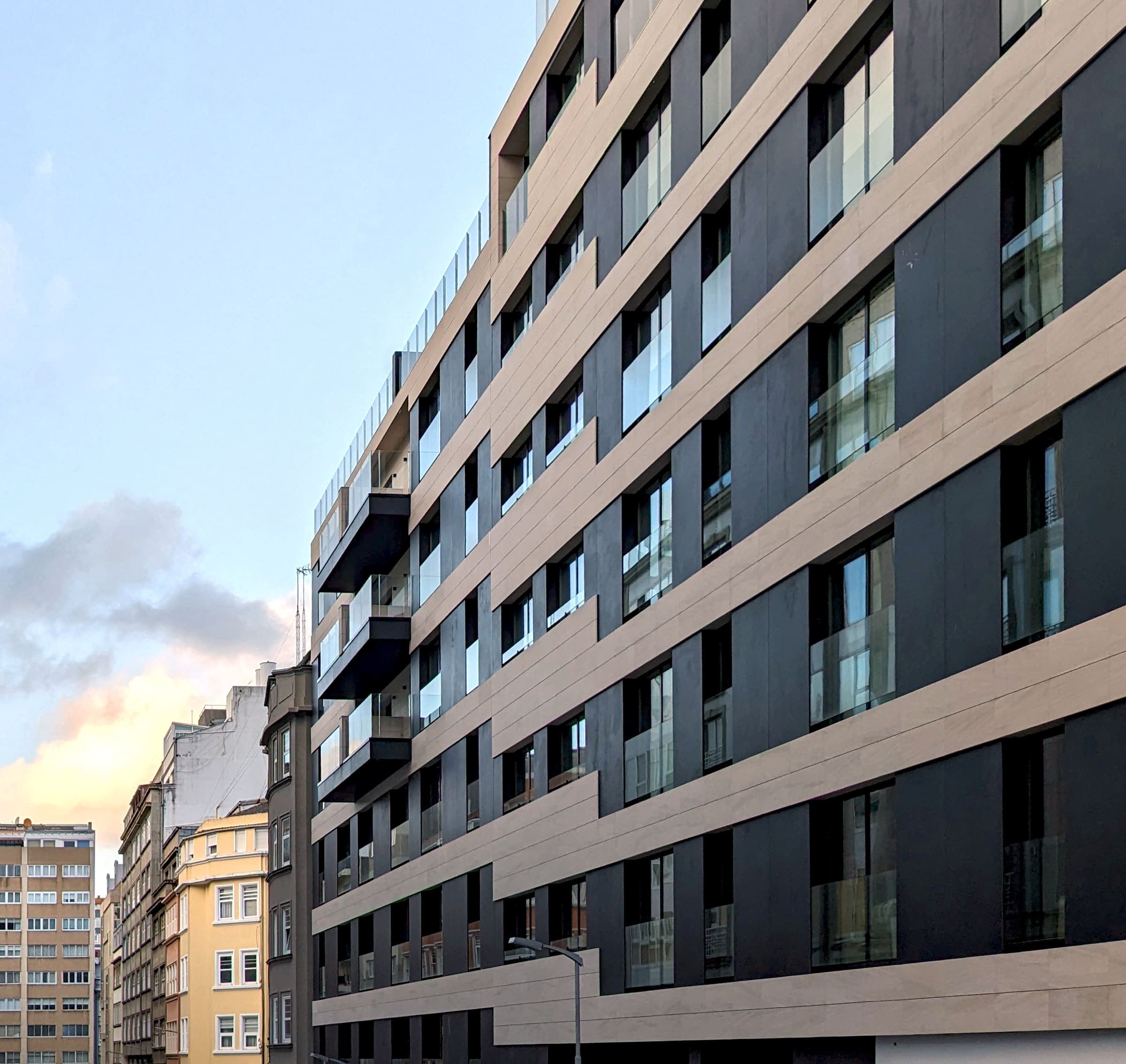 La apertura a finales de 2015 del tramo de la calle Rey Abdullah comprendido entre la avenida de Finisterre y la calle José Luis Pérez Cepeda ha permitido desarrollar un área urbana de A Coruña que hasta ese momento se encontraba sin urbanizar, y ha supuesto una oportunidad para erigir edificios de nueva planta en pleno centro de la ciudad herculina. En este enclave privilegiado se emplaza el edificio Rey Abdullah 19-23, que ofrece una amplia oferta de viviendas de obra nueva en una zona en donde la vivienda de primera ocupación es tan escasa como demandada.