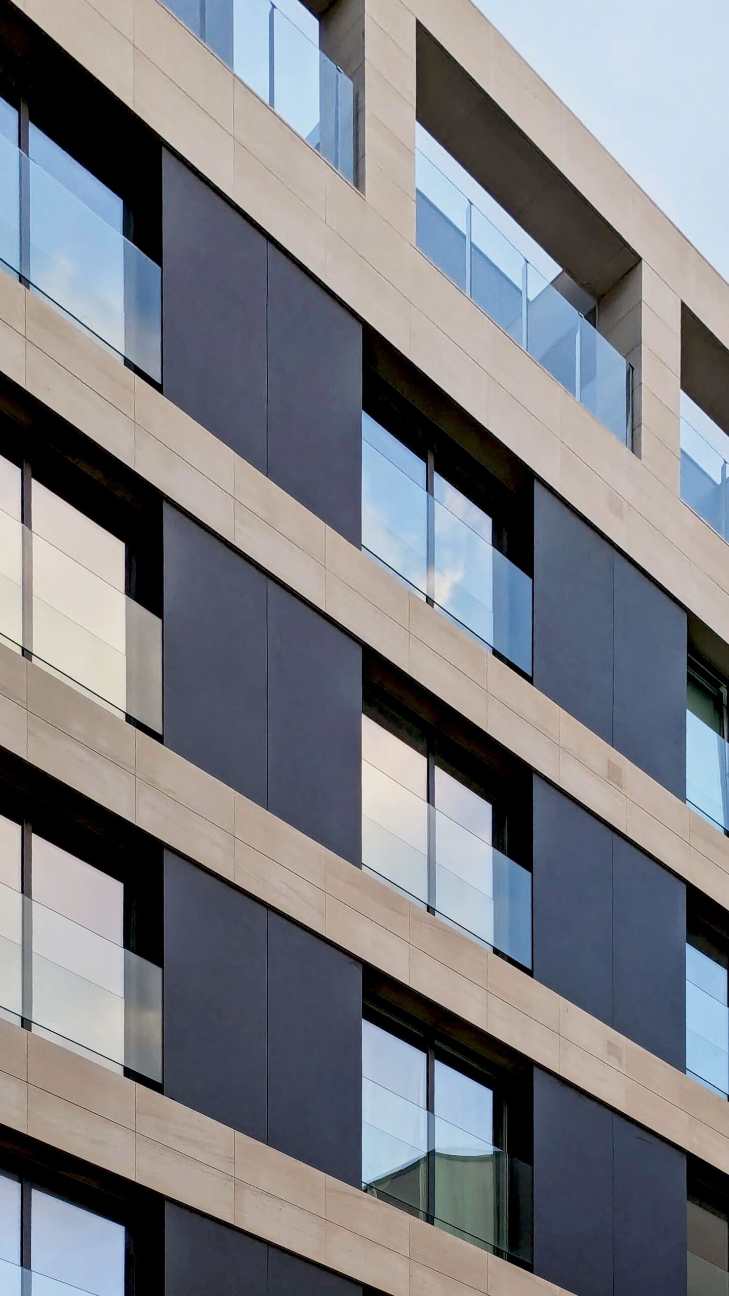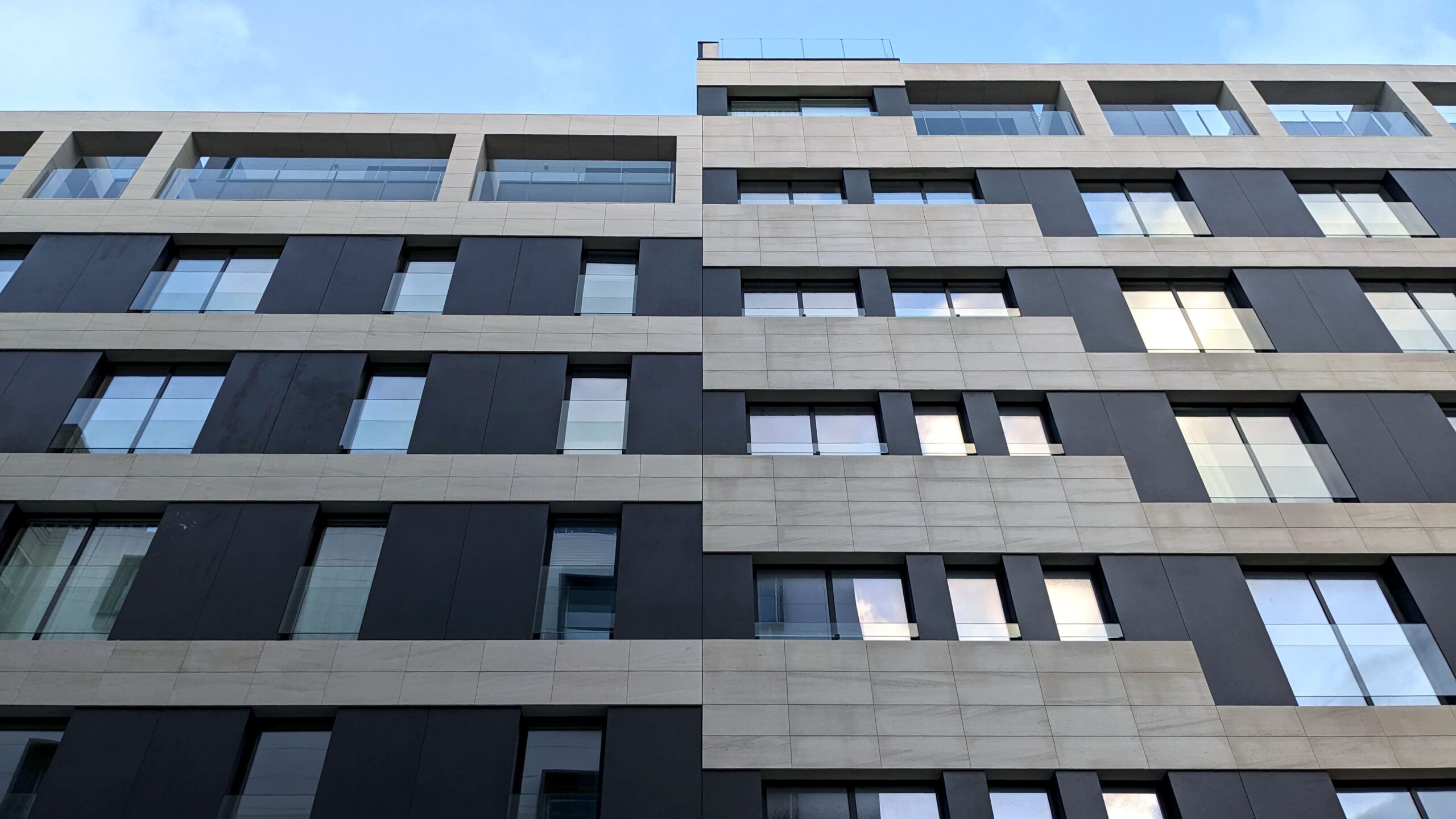 Exteriormente, el edificio presenta una imagen contemporánea marcada por una composición de líneas horizontales en las que se enmarcan grandes ventanales, balcones y terrazas.